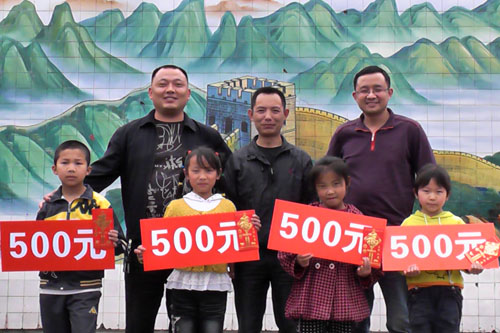 圖為鄭世華(從左邊數(shù)第一個(gè))與自己捐助的貧困生合影。